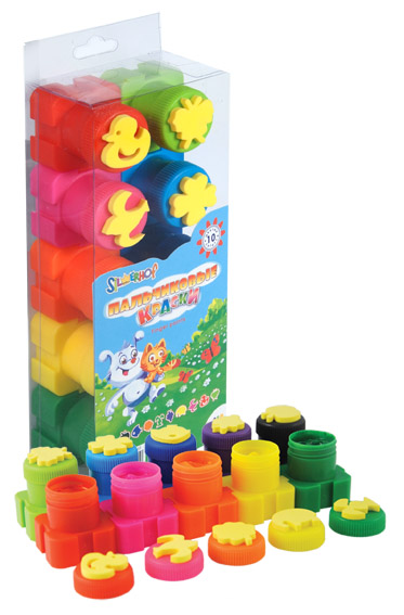 Краски для рисования пальцами HOBBY, 10 цветов в баночках по 20 мл, подставка-трансформер. Подходят для маленьких детей. Дети могут рисовать пальцами или использовать специальные штампики. Краски легко смешиваются и смываются. Состав красок: тонкодисперсные пигменты, вода, глицерин, декстрин, наполнители.